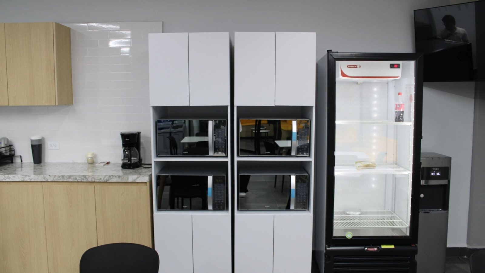 Diseñamos y fabricamos espacios de alimentación que combinan descanso y confort. Materializamos áreas vacías en puntos de descanso para tu equipo mediante carpintería a medida, plomería especializada, superficies mobiliarias e integración de tecnología y electrodomésticos esenciales. Nos encargamos de toda la infraestructura, técnica y no técnica, como instalaciones de aire acondicionado, configuración de pantallas inteligentes, montajes en pared o conectividad eléctrica. Entregando un área lista para el bienestar de tu equipo.